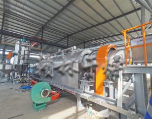 產(chǎn)品簡(jiǎn)介:間接式回轉(zhuǎn)滾筒煅燒設(shè)備,包括底座、回轉(zhuǎn)筒體、用于支撐回轉(zhuǎn)筒體的托輪裝置以及驅(qū)動(dòng)回轉(zhuǎn)筒體轉(zhuǎn)動(dòng)的齒輪傳動(dòng)裝置,所述底座上安裝有燃燒室座臺(tái),燃燒室座臺(tái)上安裝有燃燒室蓋罩,燃燒室蓋罩上設(shè)置有煙氣出口,燃燒室蓋罩與燃燒室座臺(tái)圍成燃燒室, 燃燒室內(nèi)從右至左依次設(shè)置有多個(gè)燃燒區(qū),所述燃燒室座臺(tái)對(duì)應(yīng)每個(gè)燃燒區(qū)均設(shè)置有燃燒器安裝工位,燃燒器安裝工位內(nèi)安裝有用于給回轉(zhuǎn)筒體加熱的燃燒器,所述燃燒室蓋罩兩側(cè)開(kāi)設(shè)通孔,所述回轉(zhuǎn)筒體兩端分別貫穿對(duì)應(yīng)的通孔。本實(shí)用新型結(jié)構(gòu)布置合理,排放空氣量極少,環(huán)保要求小;對(duì)于產(chǎn)品煅燒質(zhì)量