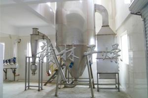 筒體內(nèi)形成螺旋向下的風(fēng)向和霧狀料液充分接觸,從而實現(xiàn)將料液干燥,干燥后的料液成固體粉狀產(chǎn)品混合在廢熱空氣內(nèi),被